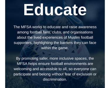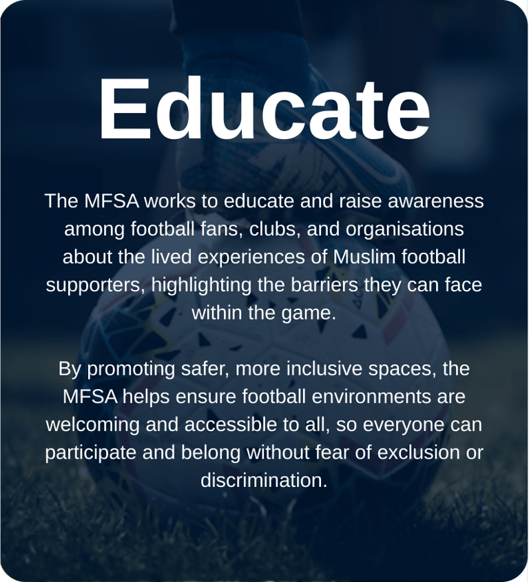 We stand against discrimination in football, creating safe spaces for Muslim fans to enjoy the game freely.