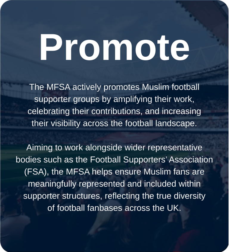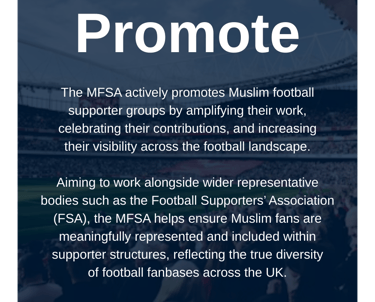 Uniting Muslim football fans to end discrimination and create safe spaces by championing the diversity of Muslim Football Fans & Supporters Groups across the UK.