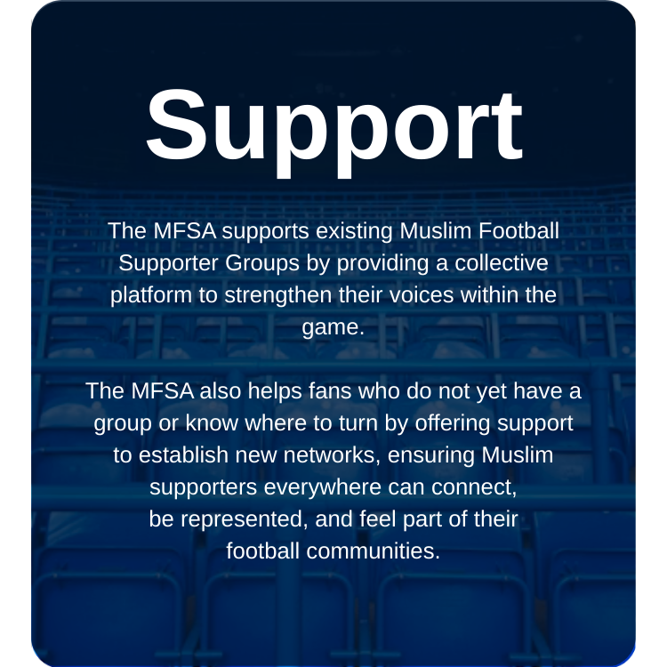 If there is no Muslim supporters’ group for your club, the MFSA can provide guidance and practical support to help establish a new group. This includes advice on organisation, engagement with clubs and connecting with other Muslim supporters across the country.